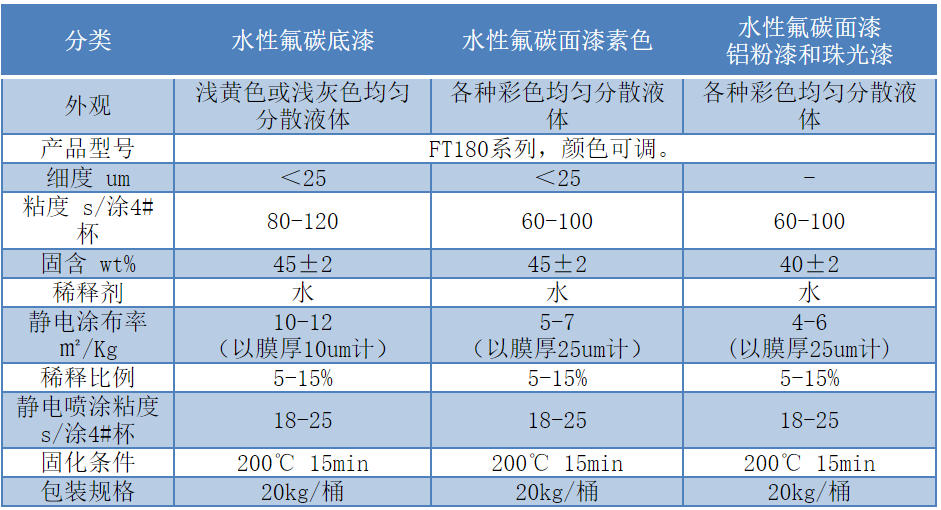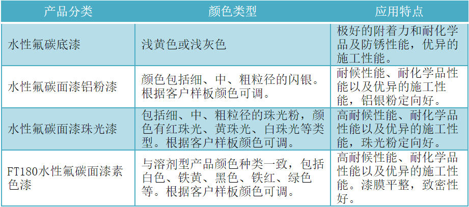 氟特科技水性热熔型 PVDF 氟碳涂料构建了完整的产品体系,可根据基材类型、应用场景、性能要求提供定制化解决方案,主要产品体系和说明如下表: