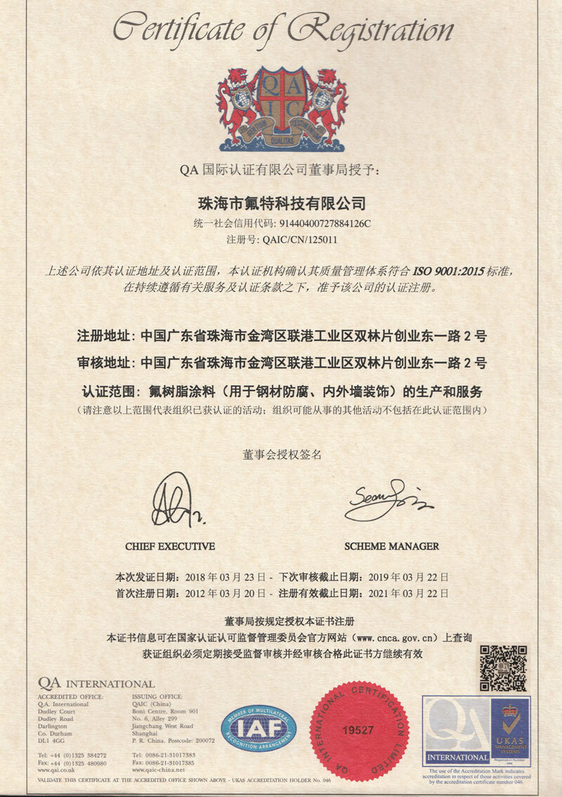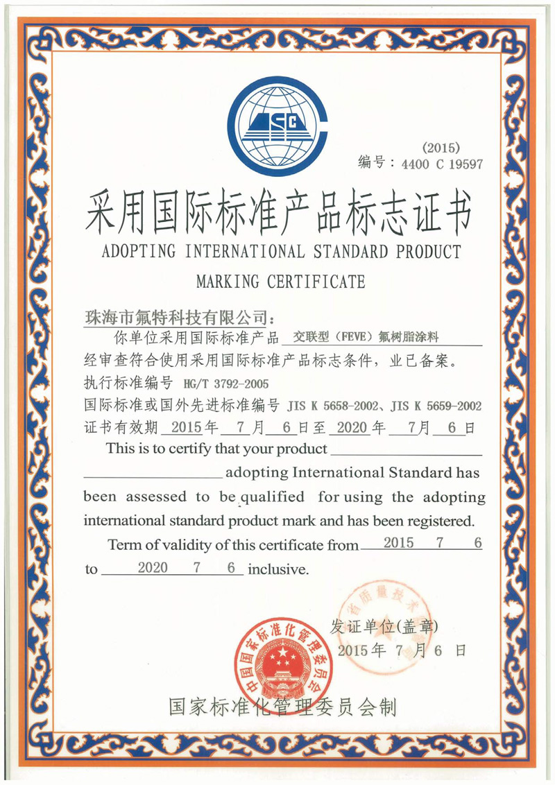交联型(FEVE)氟树脂涂料--国际标志产品证书