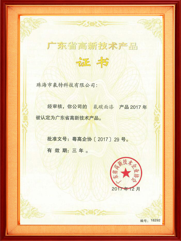 氟碳面漆广东省高新技术产品
