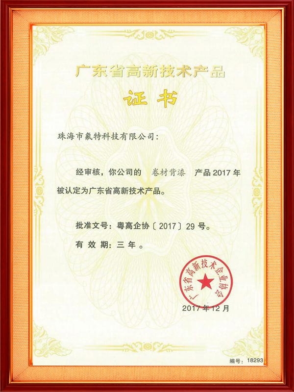 卷材背漆广东省高新技术产品