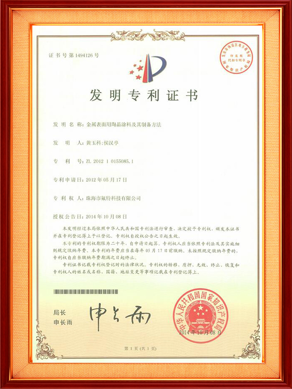 《金属表面用陶晶涂料及其制备方法》发明专利