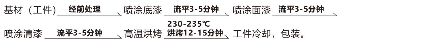 上述流程为“两涂/三涂一烘”施工工艺,通常底漆膜厚控制在8-10um,面漆膜厚为25-30um,两涂总膜厚为35-45um为宜,若需要喷涂清漆,则清漆厚度控制在8-10um,三涂总膜厚在40-50um为宜。