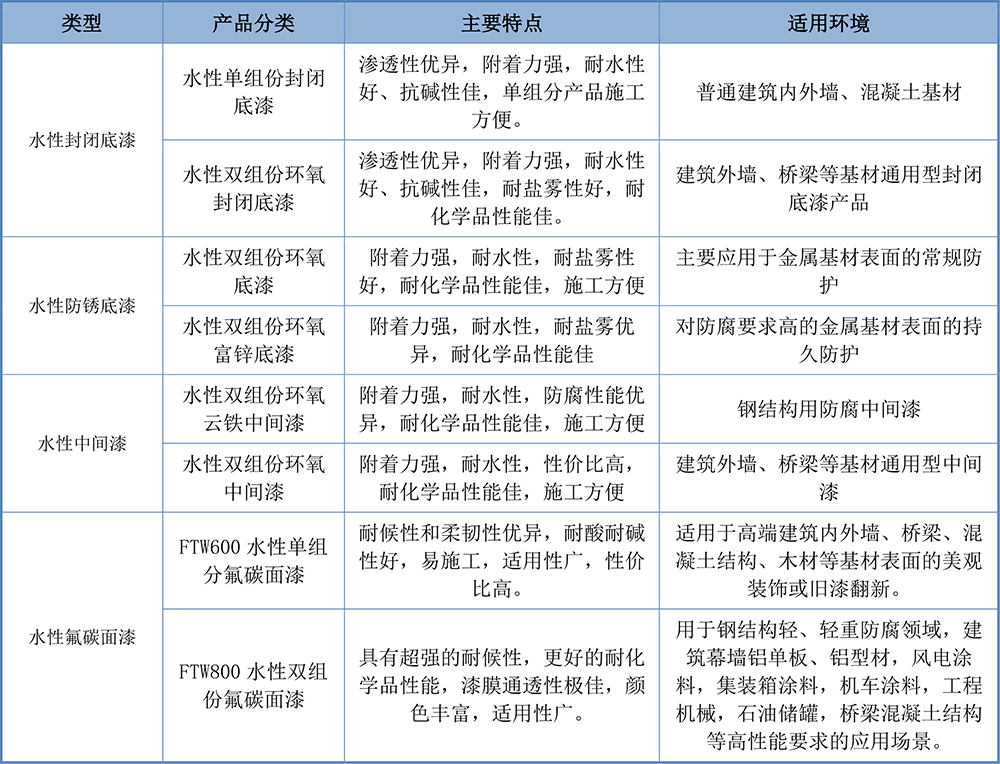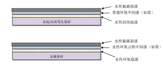 水性常温自干型氟碳涂料是我司研发的新型氟涂料,该产品由高性能水性氟乳液及丙烯酸乳液作为主体成膜物质,引入高性能的无机颜填料,用水作为分散介质,同时辅以少量水性功能助剂和成膜助剂而制得。涂料经过喷涂或滚涂施工以后,在常温下即可形成高致密性氟碳涂层,不仅具有良好的漆膜柔韧性,同时也具有优异的耐候性、耐水性和耐化学品等性能。根据应用环境和性能要求的不同,该体系包括单组分和双组份两类,产品体系组成丰富,应用领域广泛。